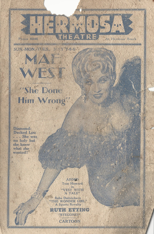 The Bijou Theater, presently Chase Bank, was built in 1923 for the up and coming city of Hermosa Beach. This exhibit is designed to engage, enlighten, and stimulate curiosity about this theater and the cinema history of one of South Bay’s last surviving movie palaces. Community members are invited to explore Hermosa’s past through one of the oldest buildings in Hermosa and to engage with the larger context of the early history of Hermosa Beach. The exhibit features numerous objects, photos, and archival materials from the Hermosa Beach Museum to take a look at its evolution from the Metropolitan to the Bijou Theater, while highlighting the people involved, and the stories of people's experience at the theater.